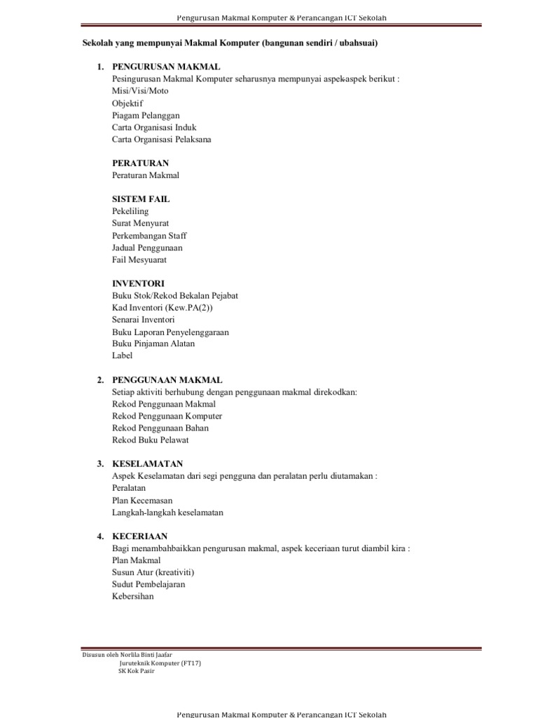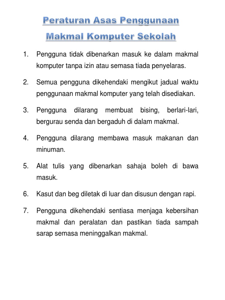 Peraturan Asas Penggunaan Makmal Komputer Sekolah Pdf