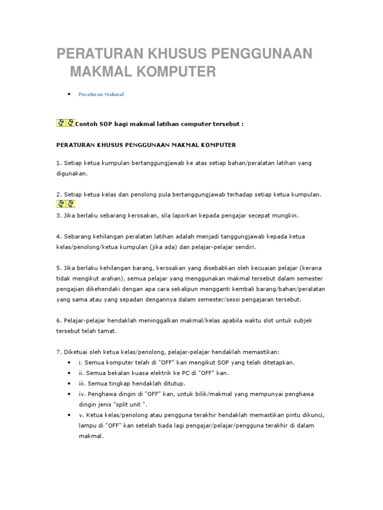 Peraturan Khusus Penggunaan Makmal Komputer Pdf