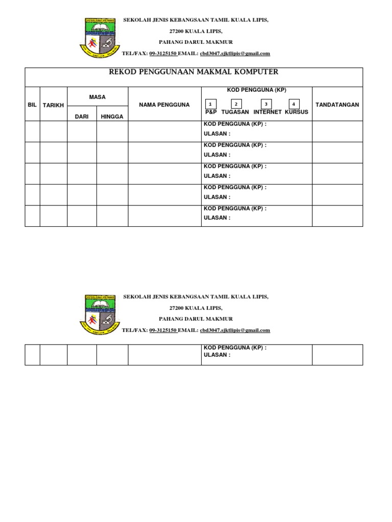 Rekod Penggunaan Makmal Komputer Pdf